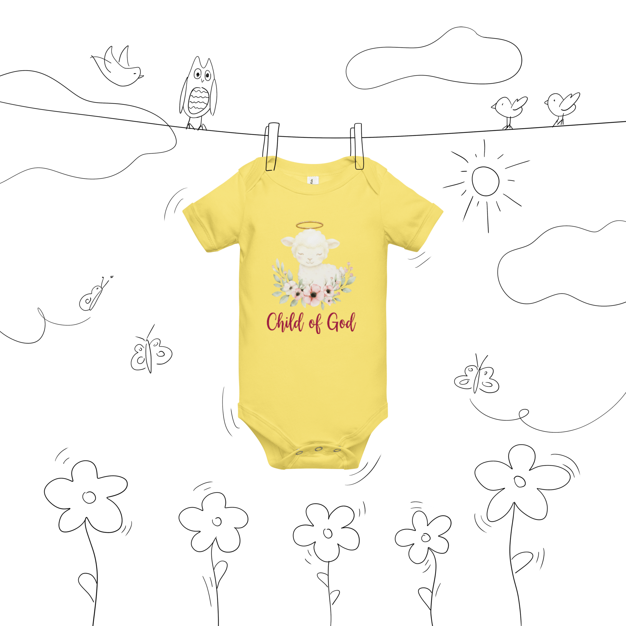 Dress your baby to the nines with this 100% cotton one piece. It has three snap leg closure for easy changing, a comfortable envelope neckline, and a beautiful print that's bound to get the baby all happy and giggling.