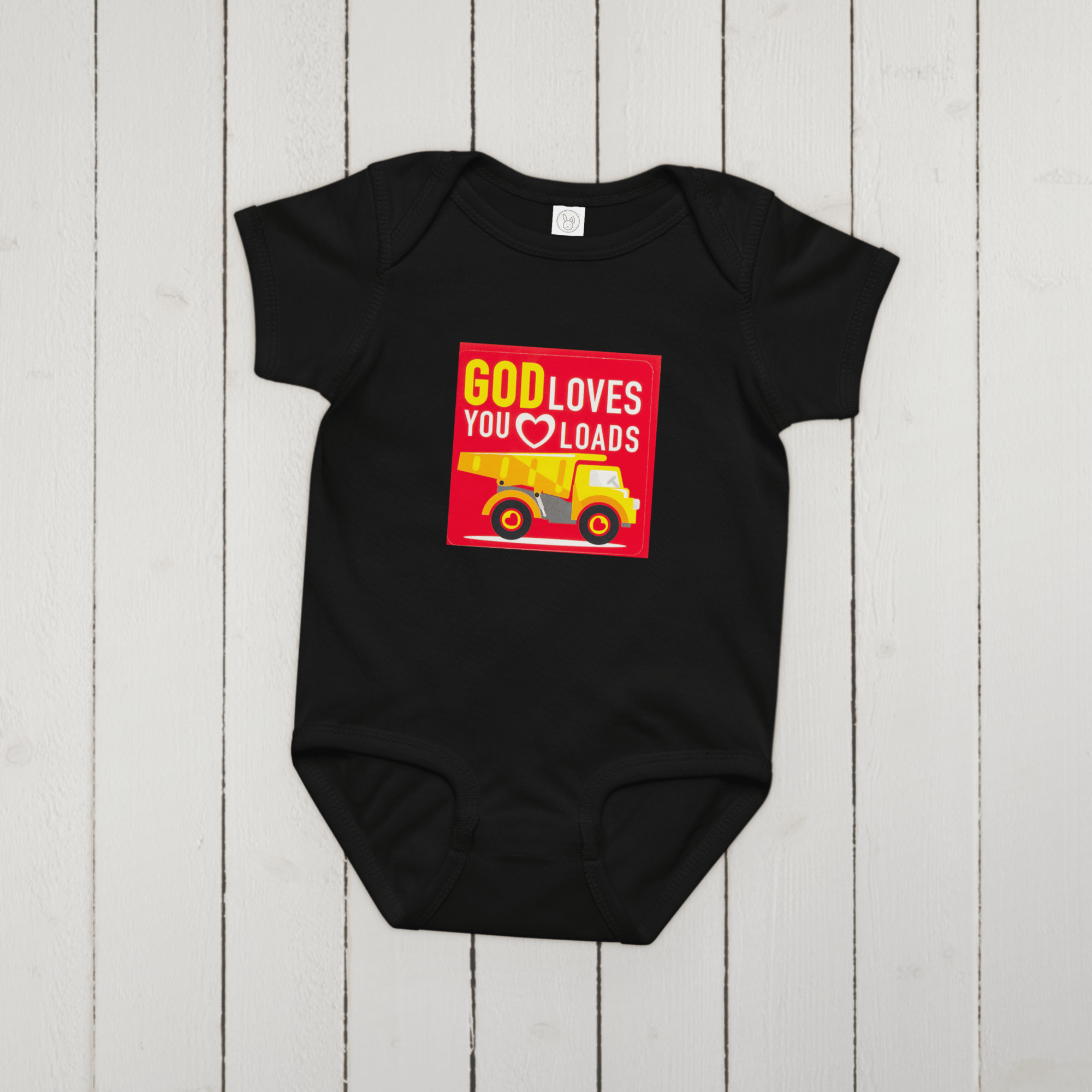 Baby jersey bodysuit (God loves you loads)