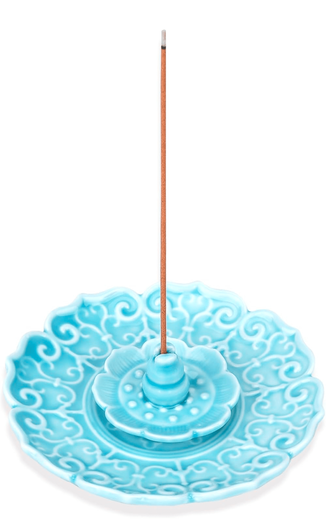 Incense Burner Lotus Incense Stick Holder Incense Holder for Sticks Ceramics Incense Burner Tray for Home Decor (Blue)