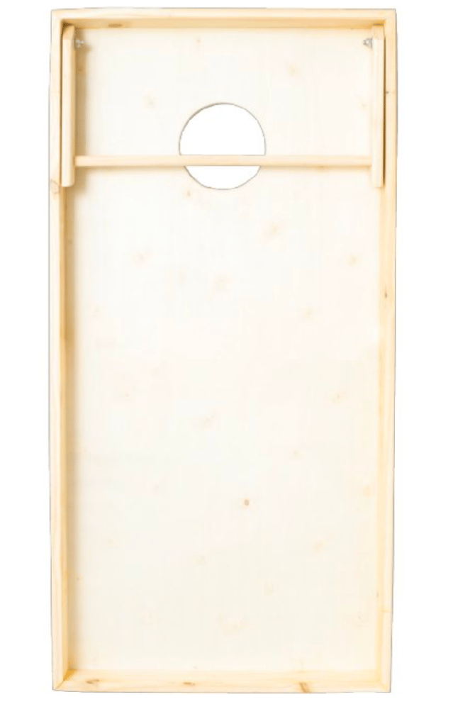 Cornhole sets are constructed with poplar wood and designed with cross beams to support the legs and the back of the boards