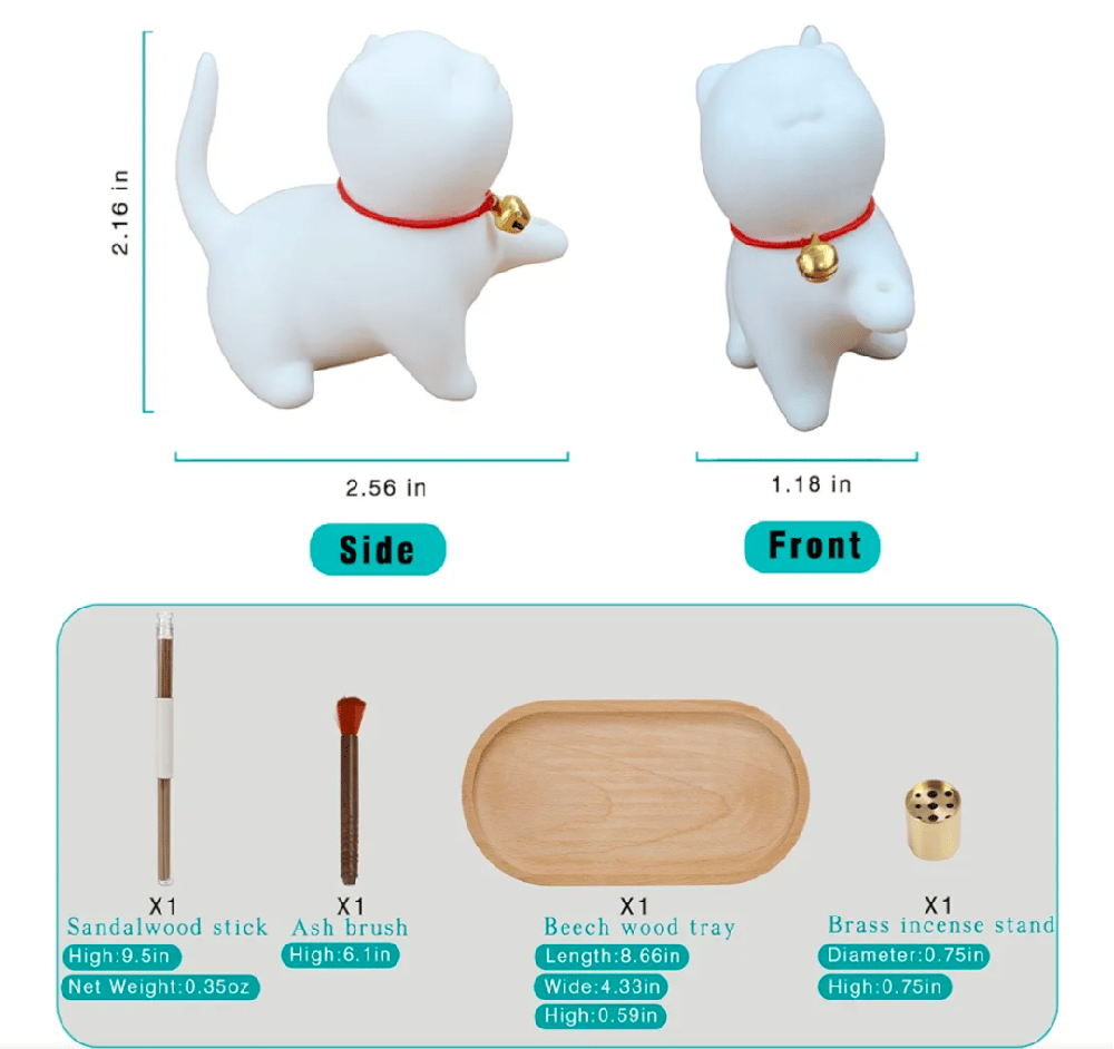 Cute Ceramic Cat Incense Stick Holder, Insence Burner Set, Large Beechwood Ash Catcher Copper Incense Stand Incense Sticks Brush