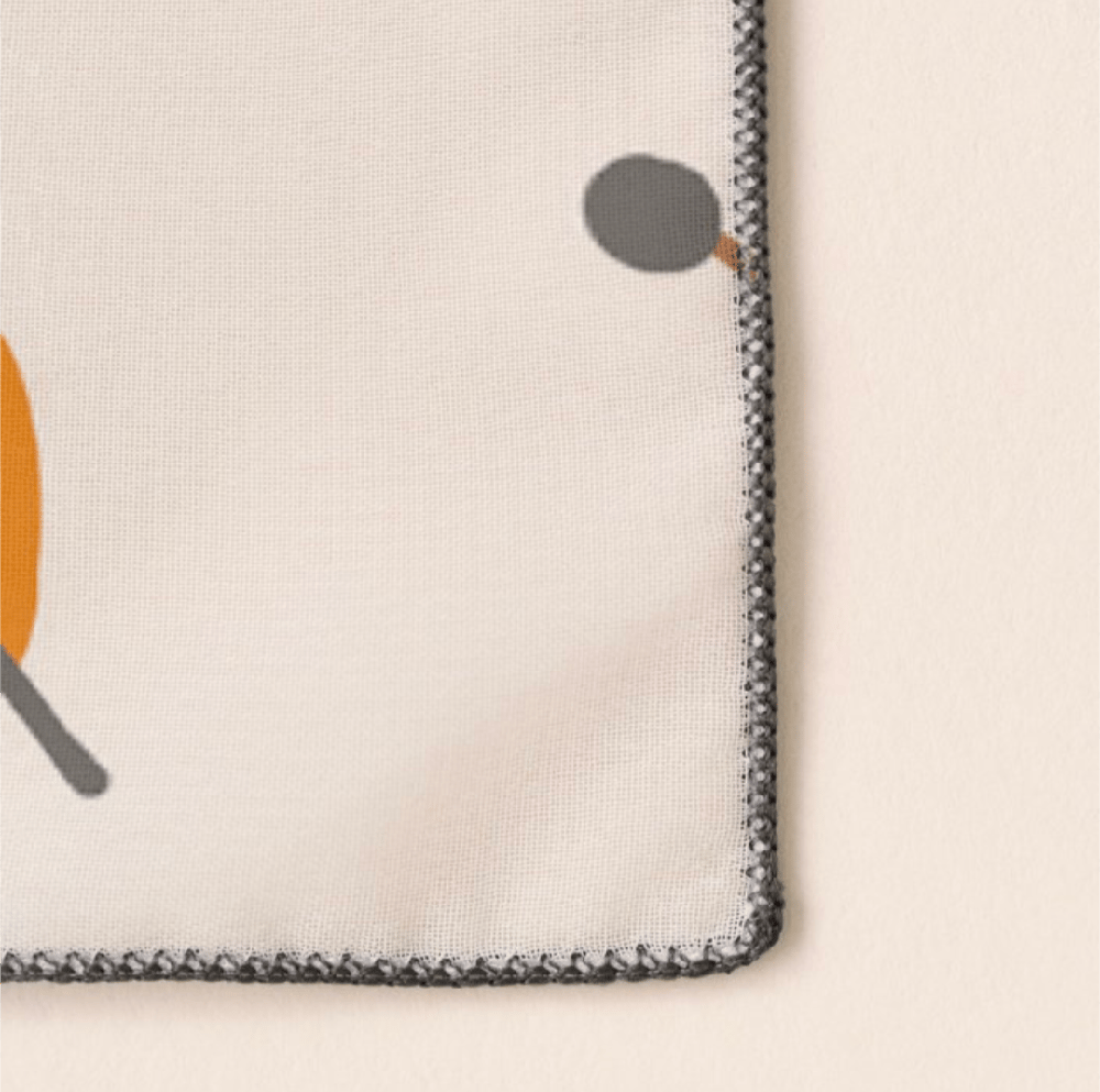 Clean rolled hem; scarves will be printed, hand-cut, and sewn by skilled seamstresses using top-of-the-line finishing machines