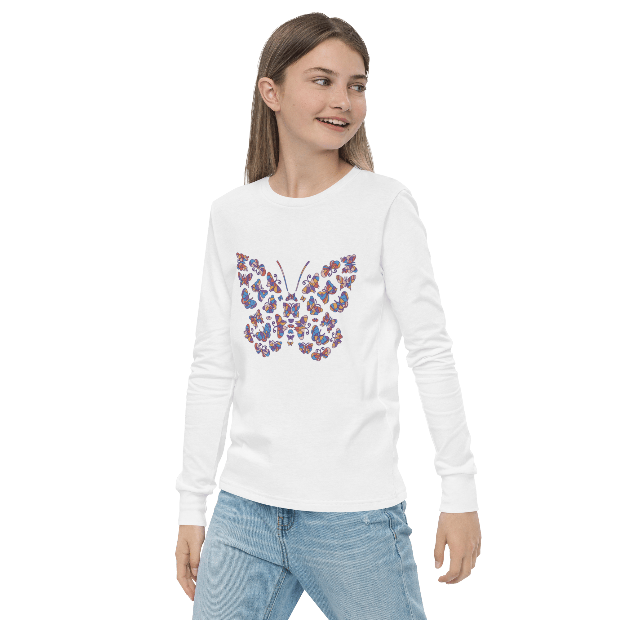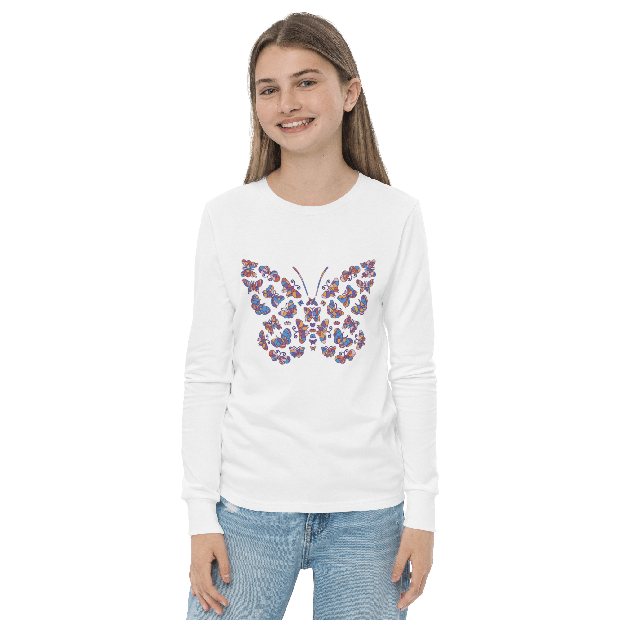 The Youth Long Sleeve Shirt is made of Airlume combed and ringspun cotton, which is known for its softness and durability. The shirt has a regular fit, classic crew neck, and ribbed cuff.