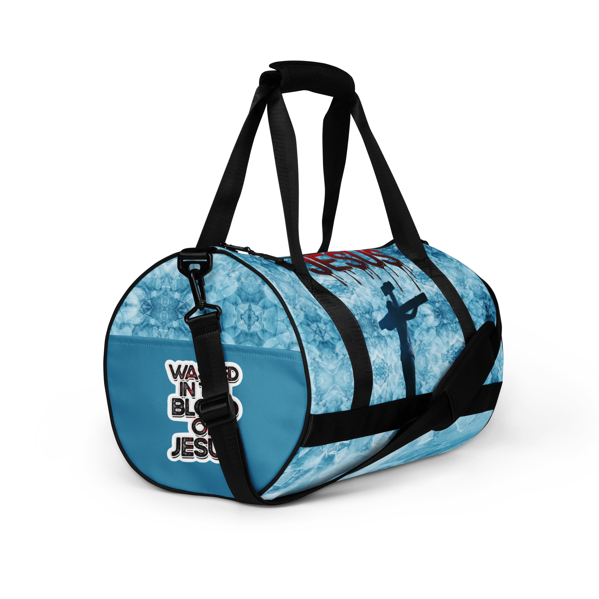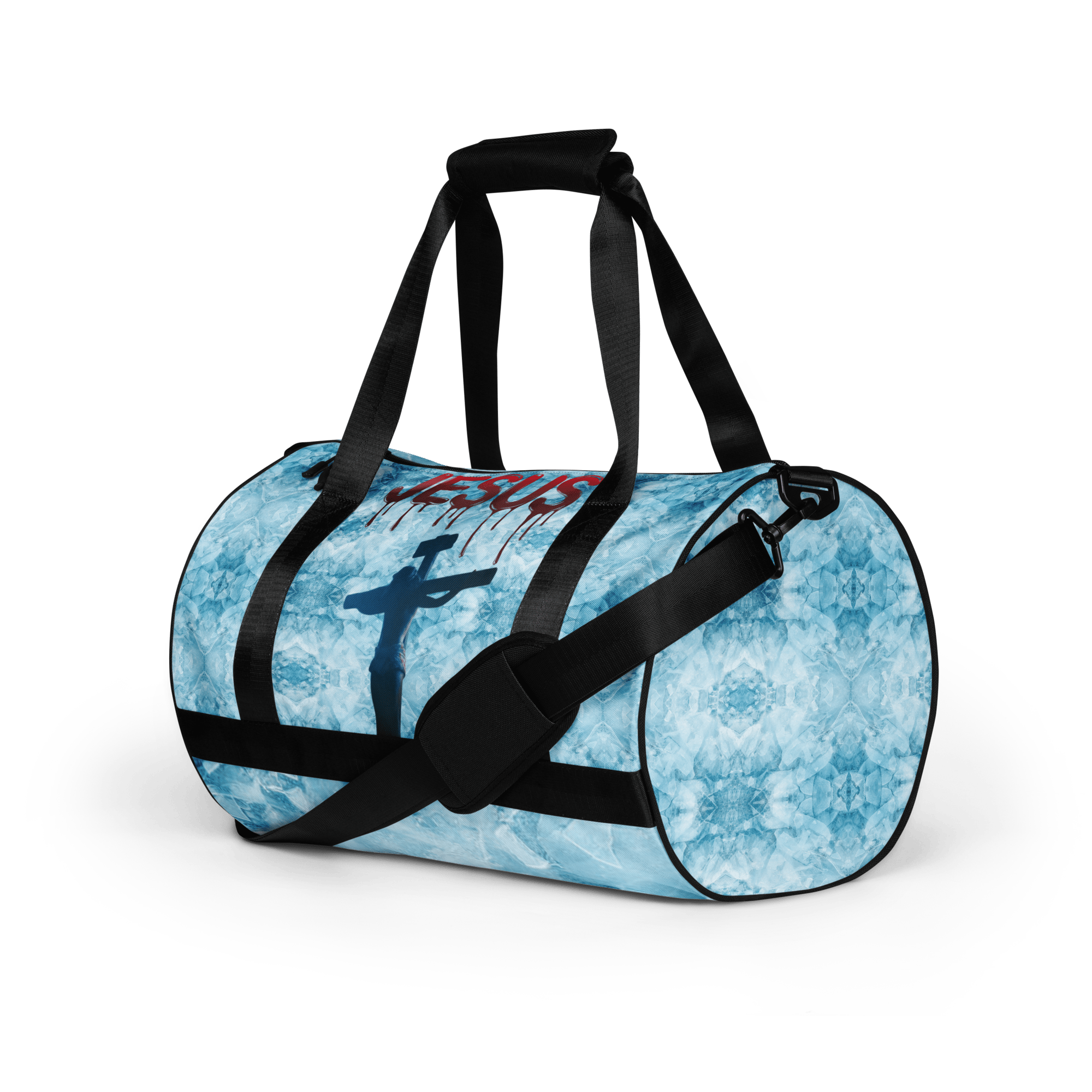 Ready to get your fitness on? Add some punch to pumping iron with this all-over print gym bag. Made from 100% polyester and sturdy, water-resistant fabric, this bag is fun meets function. And it’s got pockets!
