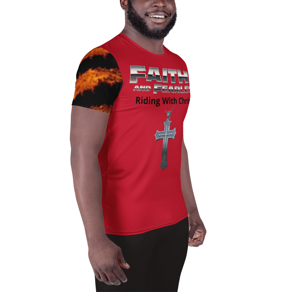Men's athletic t-shirt (Faith Fearless) Riding with Christ