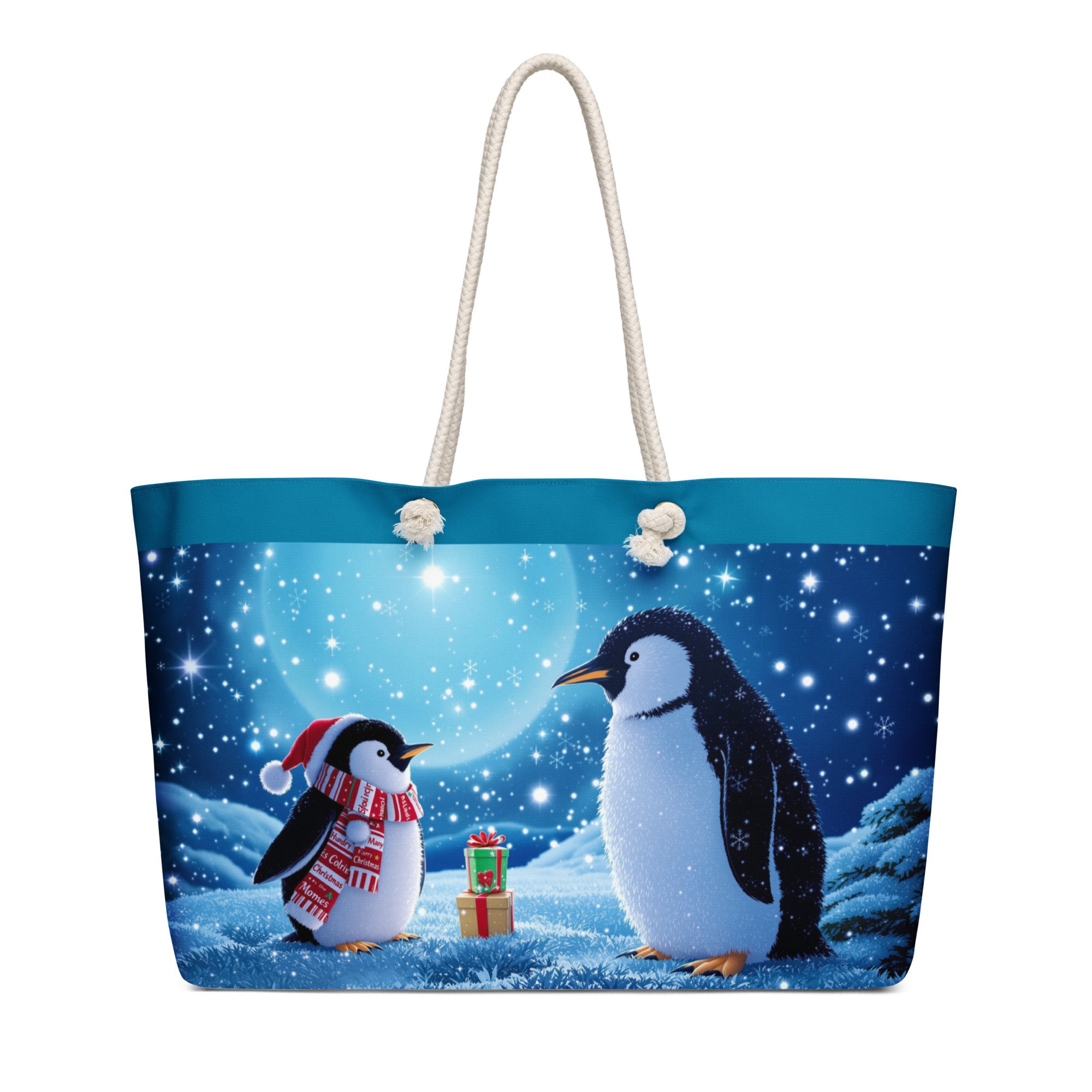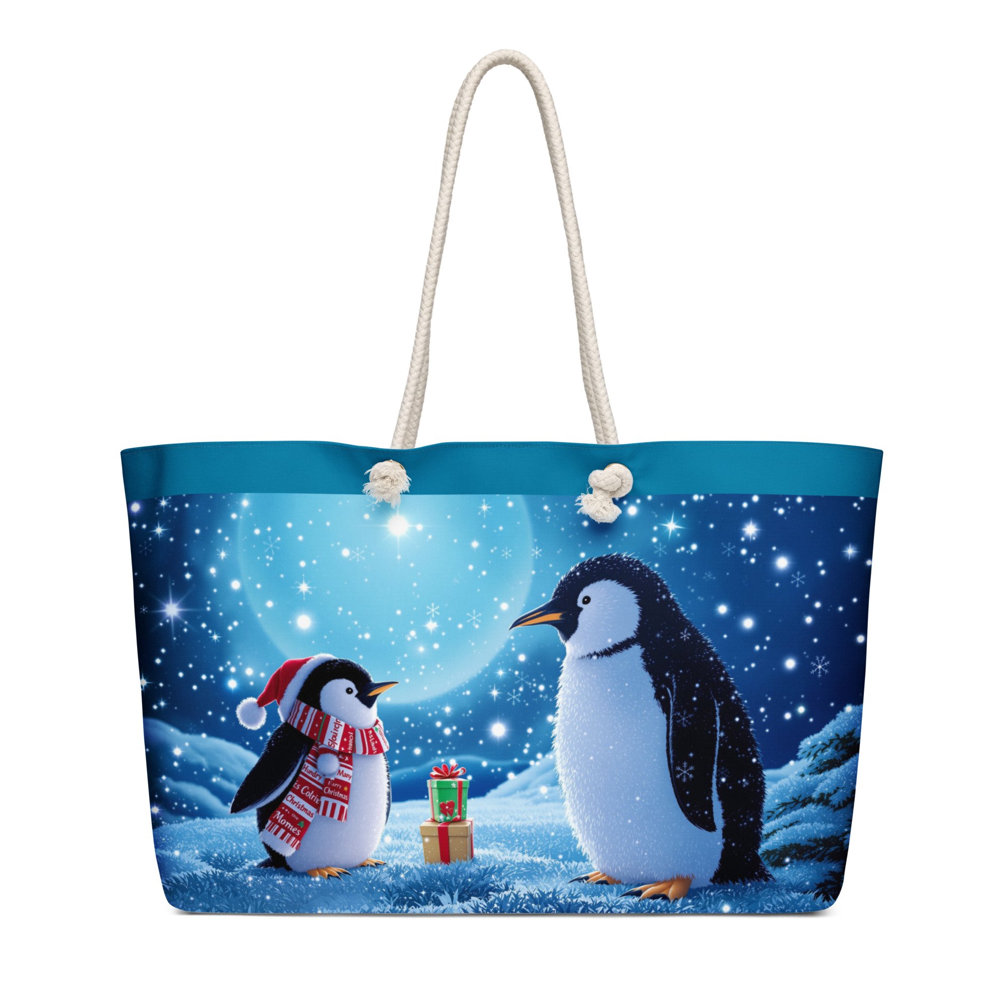 Oversized weekender bag (Christmas Penguin's) with blue