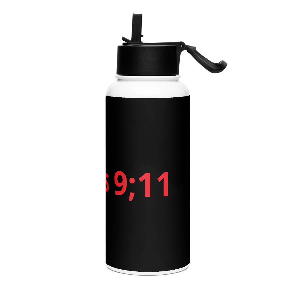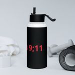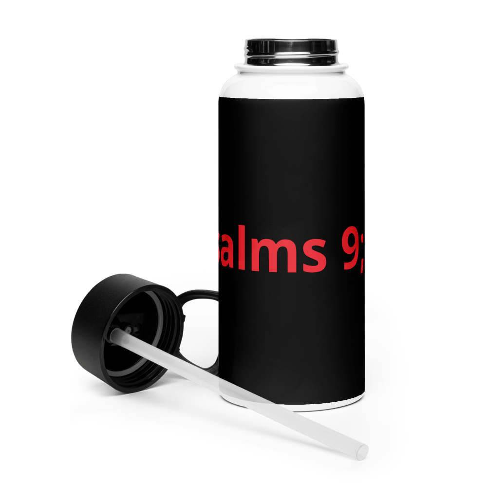 Stainless steel water bottle with a straw lid (Psalms 9;11 Black and Red)