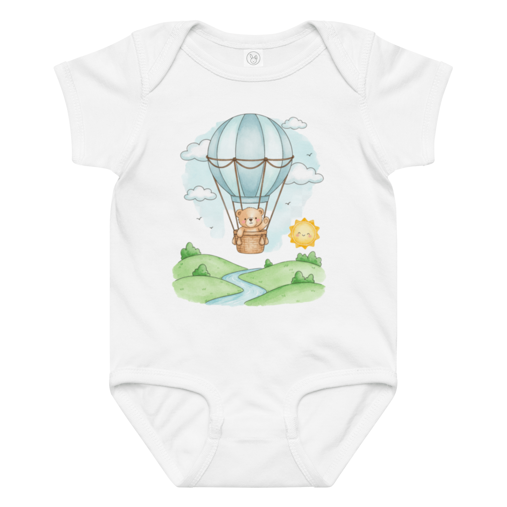 Unisex Baby jersey bodysuit (Bear in a hot air balloon)
