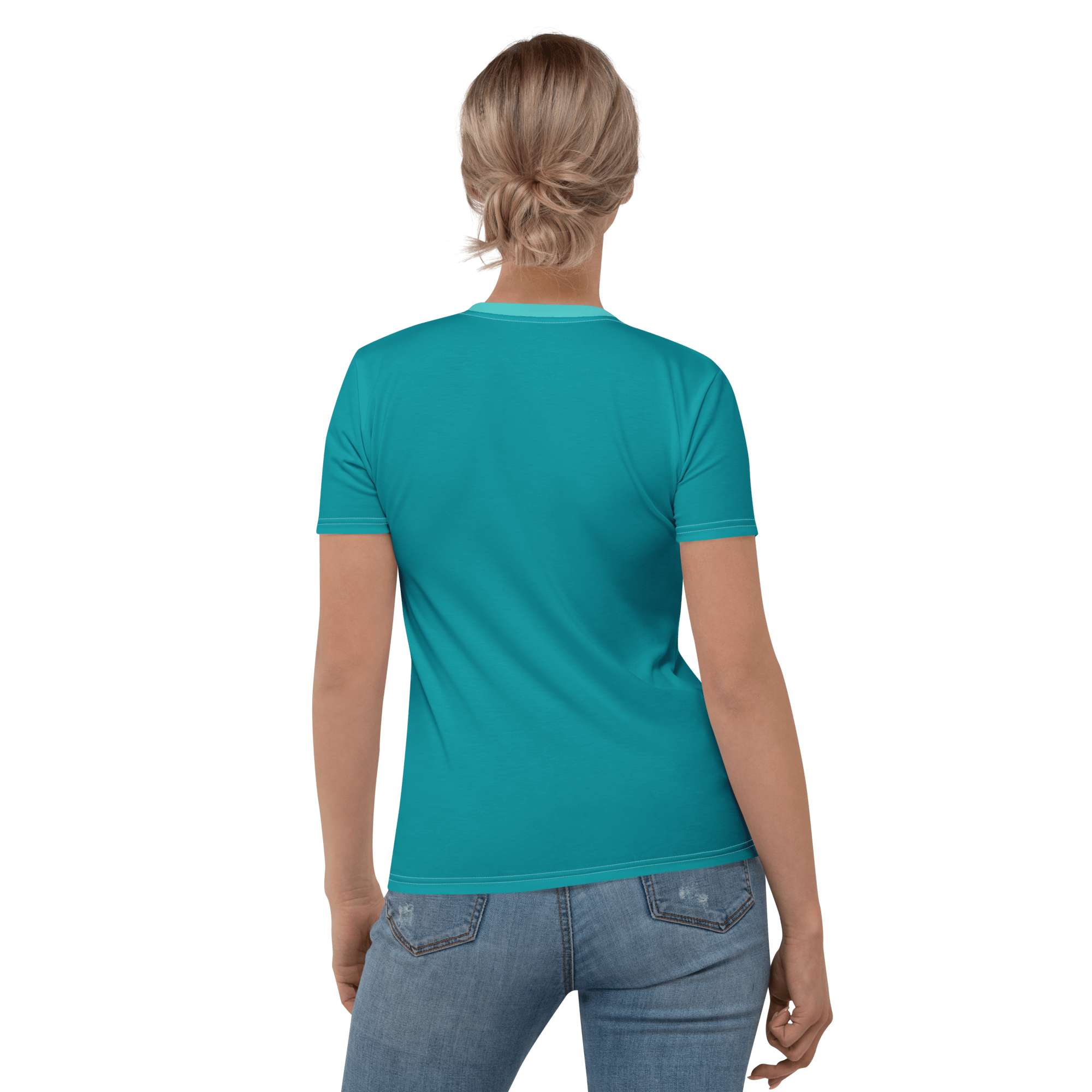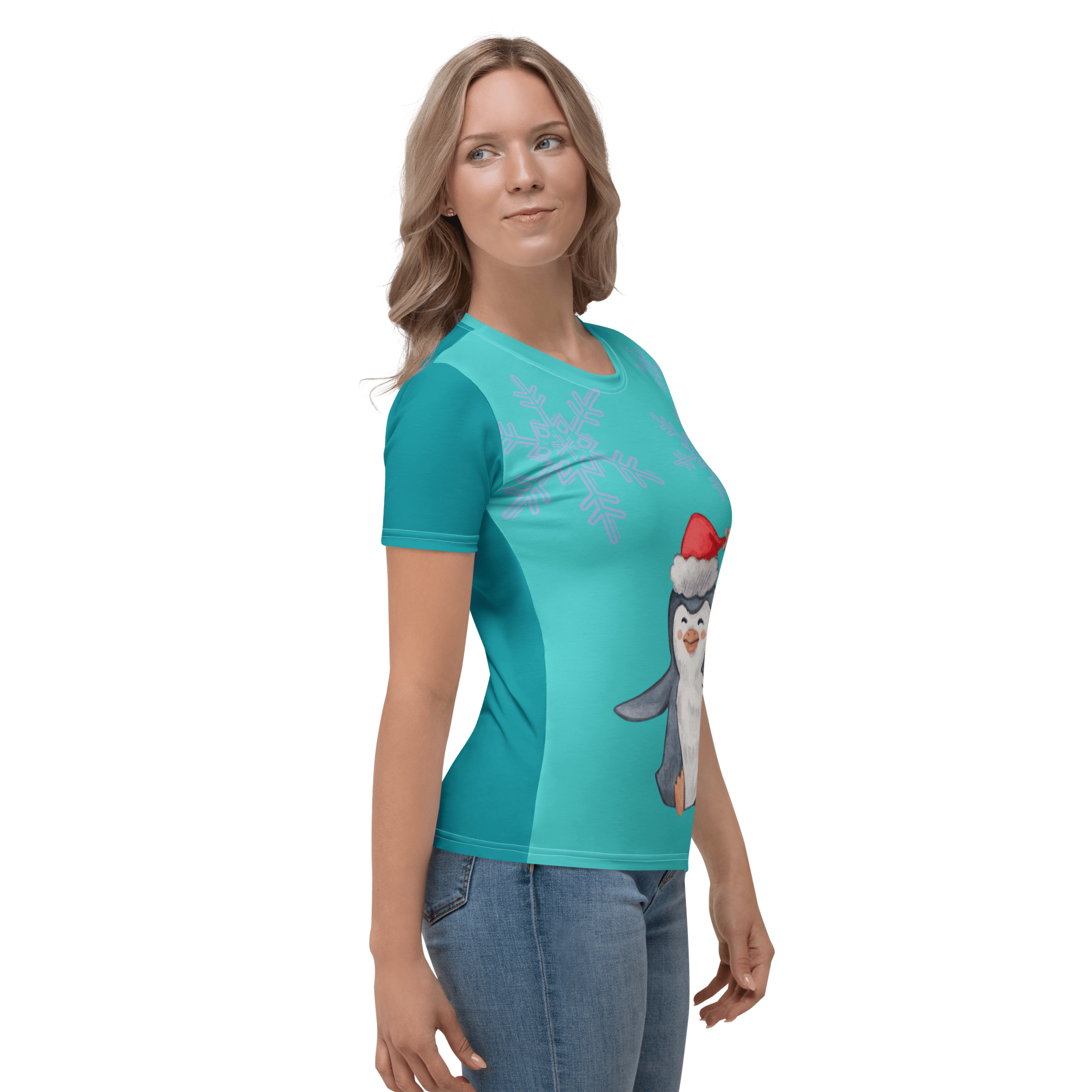 Women's T-shirt (Two-Tone Teal shirt with Christmas Penguin)