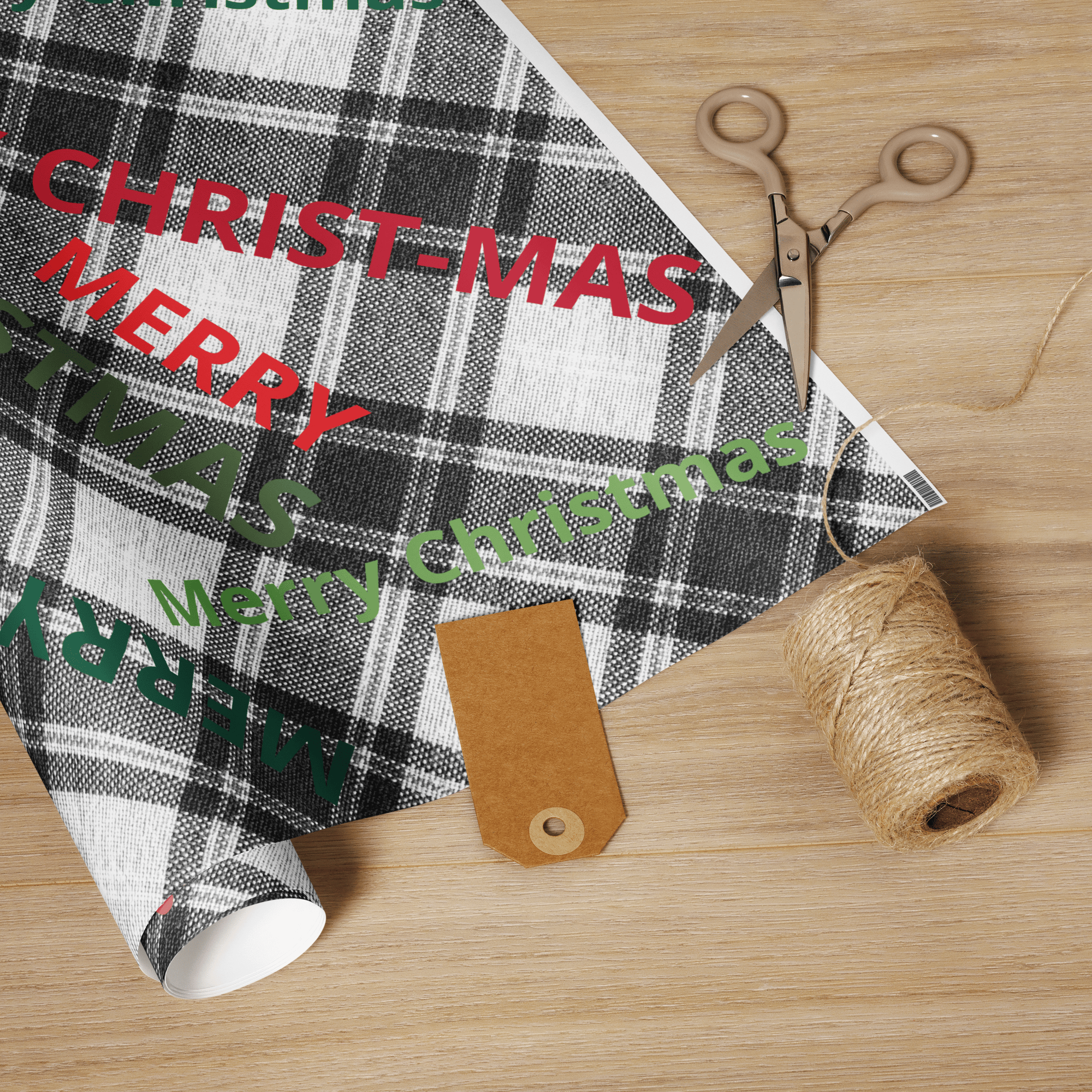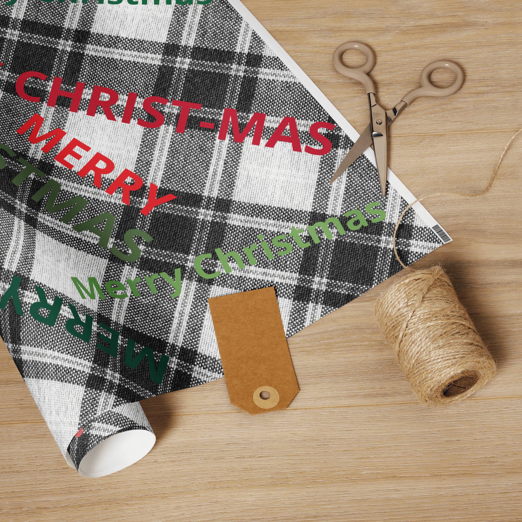 Wrapping paper roll (Merry Christmas on Black and white plaid)